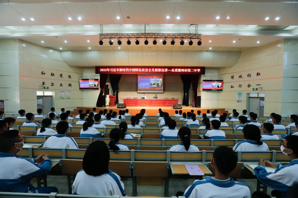 2022年9月21日上午,应德州市教体局邀请,德州职业技术学院马克思主义学院教师徐锐赴德州二中,开展习近平新时代中国特色社会主义思想宣讲活动,徐锐老师为在座的200余名同学作题为《深入贯彻习近平新时代中国特色社会主义思想》的报告。此次活动是全市推进“大中小学思政课一体化建设”的重要工作内容。近年来,学校高度重视德州市大中小学思政课“双协同双提升”项目,与德州市大中小学开展广泛交流,扎实开展课程建设、教学改革、师资培养等合作共建活动,成效明显,有力地推动了全市思政课建设质量,为培养德智体美劳全面发展的社会主义建设者和接班人作出了积极贡献。