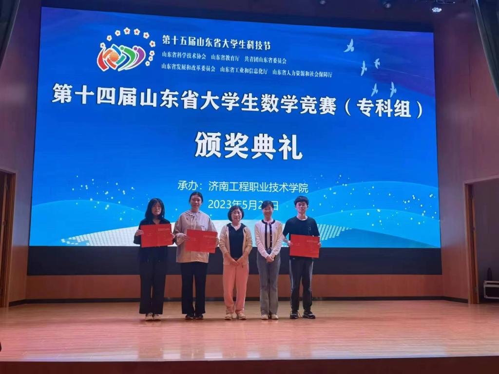 2023年5月21日,第十四届山东省大学生数学竞赛(专科组)总决赛在济南工程职业技术学院落下帷幕。来自全省的64所学校,866人参加总决赛。我校学生再创佳绩。由赵树欣、朱振华、申立平三位老师指导的学生分别获得两个一等奖和一个二等奖的好成绩。
