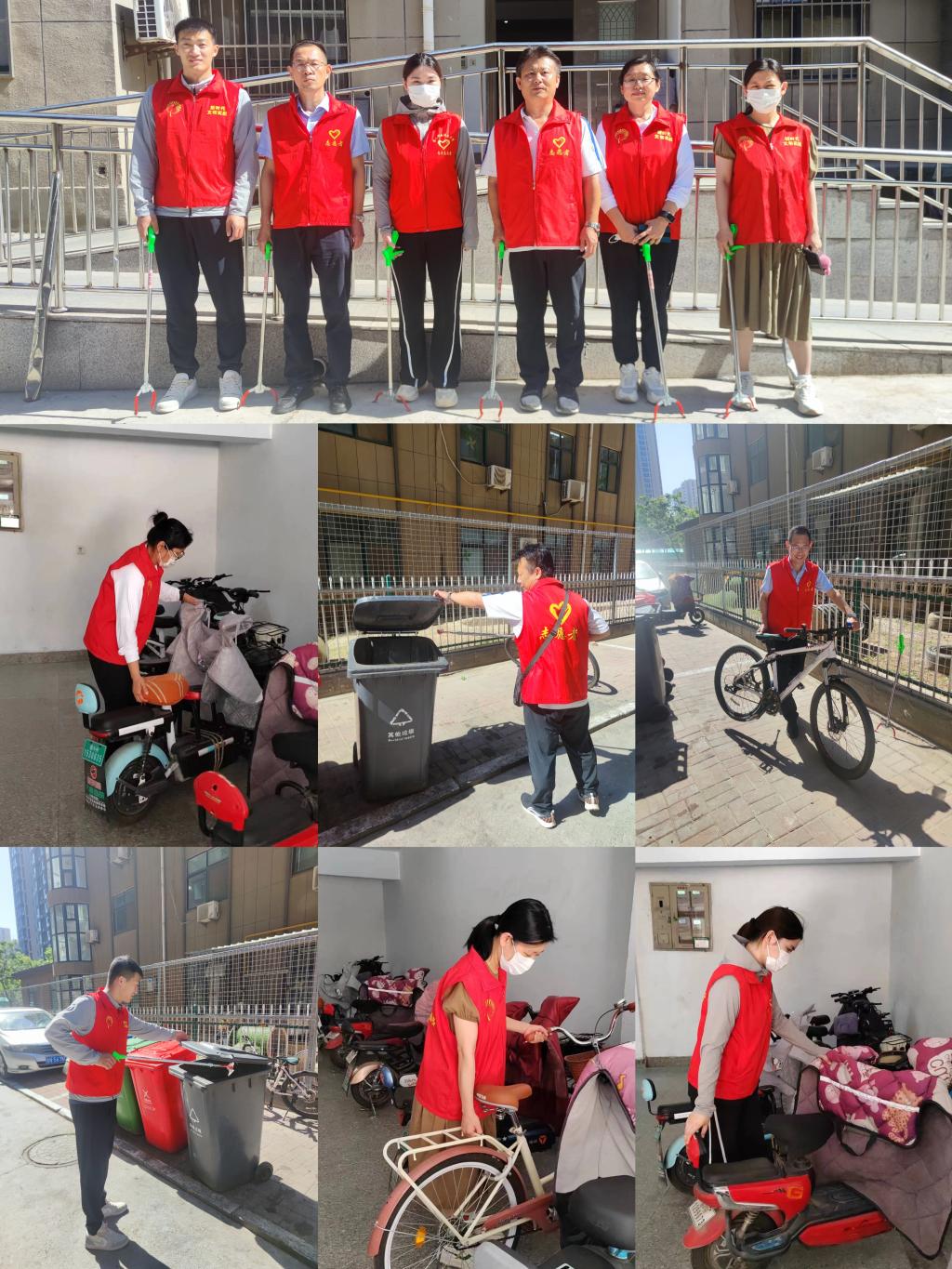 6月8日上午,基础部党支部党员、教师志愿者在盛世华园A7栋开展帮扶活动,主要是对道路旁垃圾进行了清理;将部分摆放不到位的非机动车有序摆放到停放点,深入楼道逐层清理垃圾并摆放车辆。