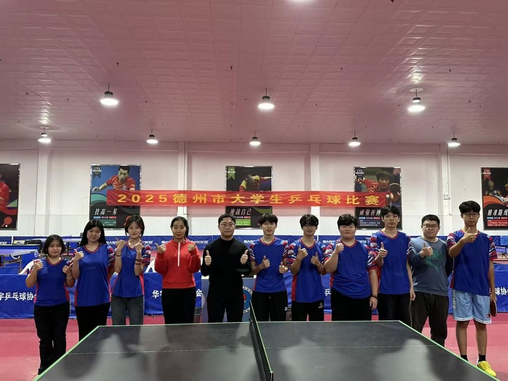 2025年12月14日,德州市首届大学生乒乓球比赛在山东华宇工学院体育馆举行,来自六个德州高校的70多名运动员参加比赛,我校宋振超老师带队,梁强和郭元姣老师任教练员并选派8名校队队员参赛,并最终斩获多项优异成绩。