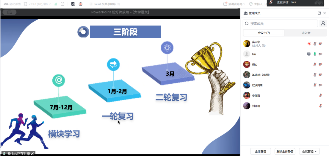 为丰富我校教师专升本培训经验,进一步提升我校专升本培训质量,助力我校教师快速成长、了解最新政策、课程优化设计,推动整个培训工作规范化、常态化、长效化,基础部拟定于2025年10月14日--2025年10月17日聘请滨州职业技术学院专升本培训团队骨干教师开展专升本线上培训交流指导讲座,基础部专升本教师团队参加本次培训。